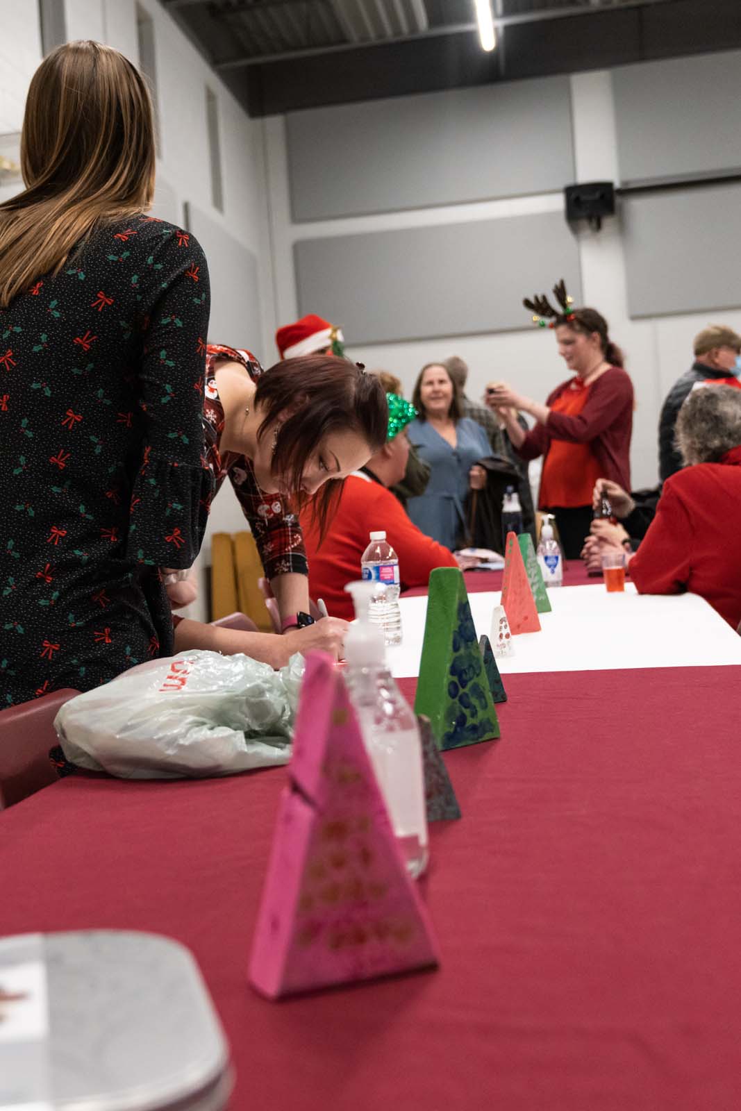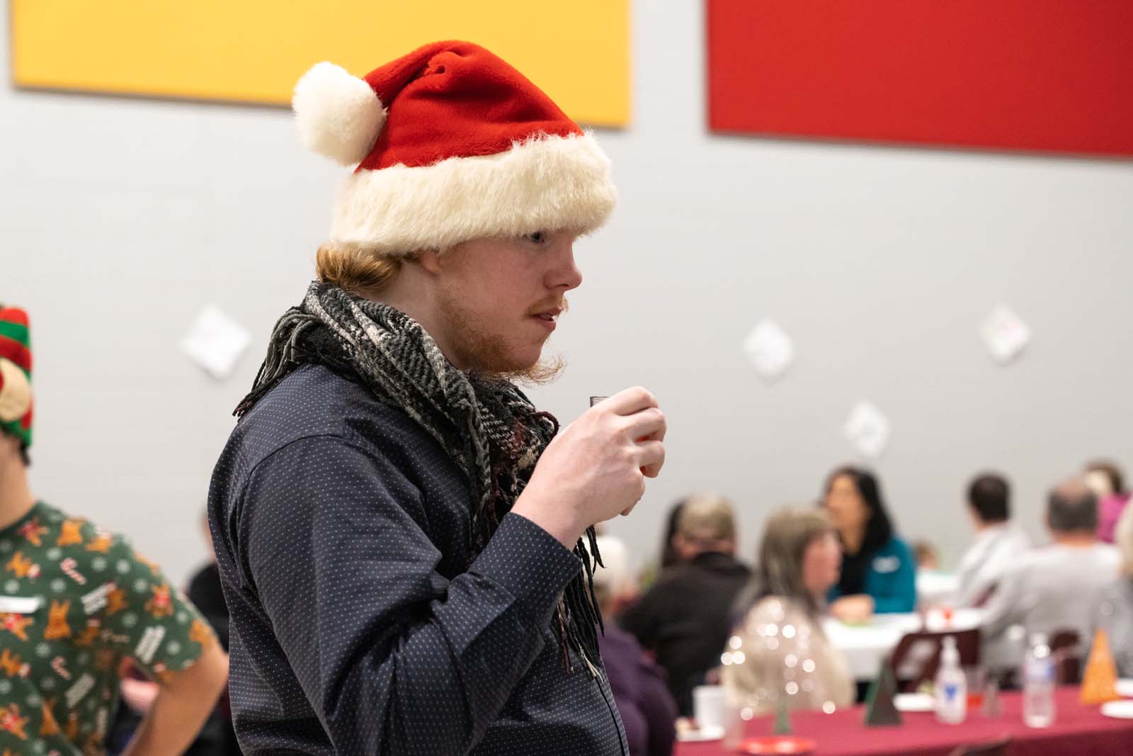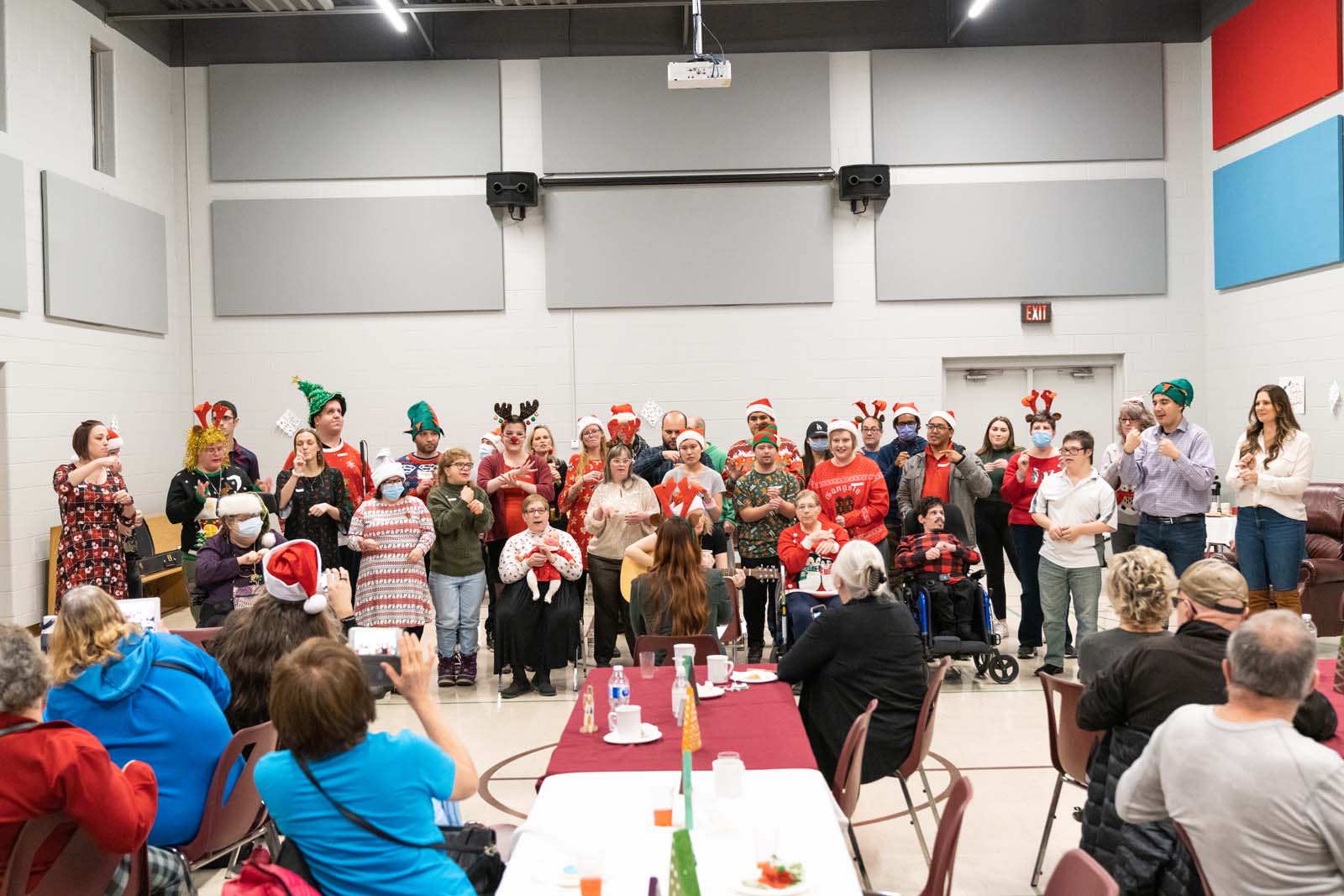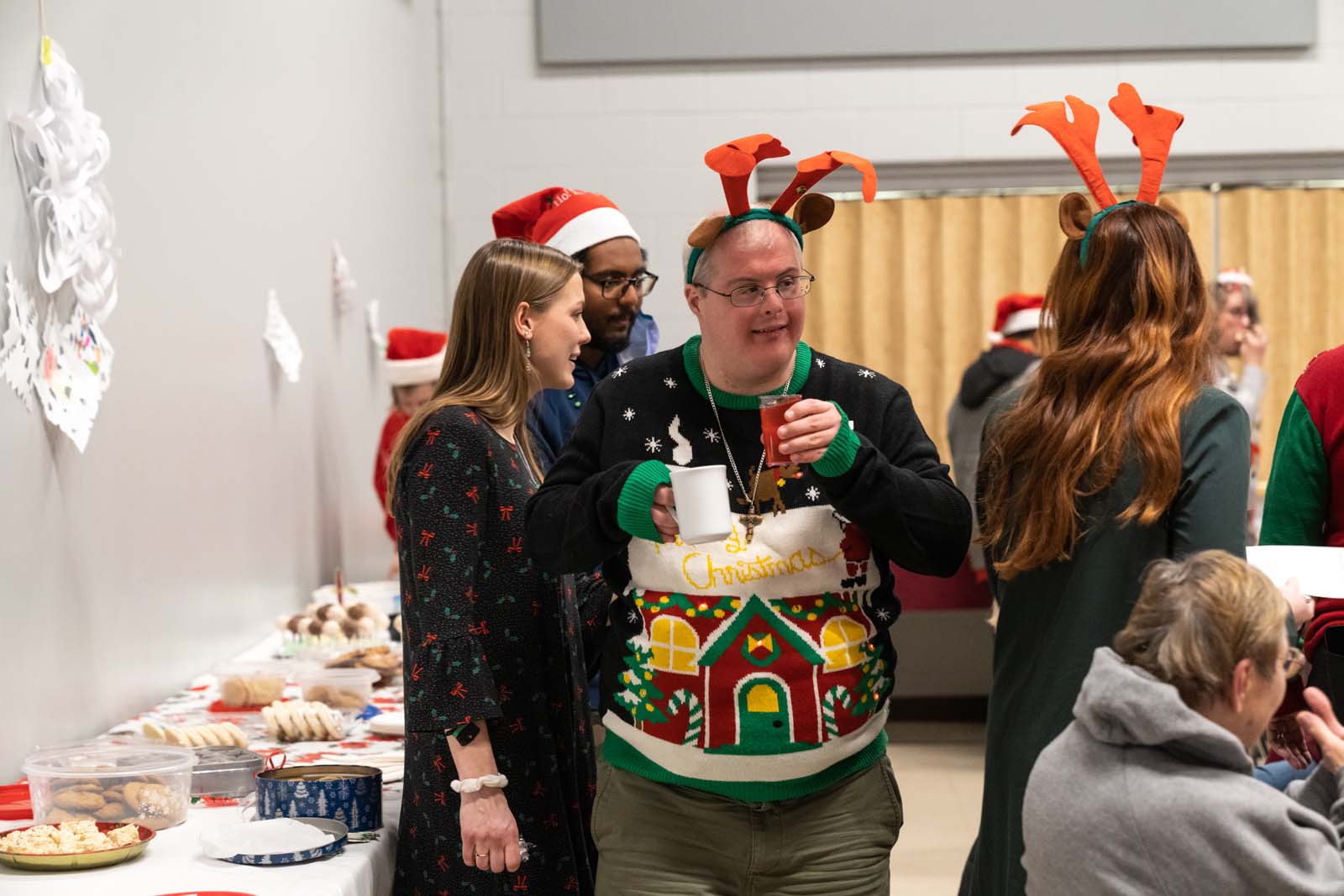 Activity tables included a craft table for ornament making as well as an Etsy table to show off our participant’s art which can be purchased on our Etsy site year round. The night wouldn’t have been complete without our concert of songs led by our staff teams and participants which included sign language and singing to Jingle Bells and a sing-along to We Wish you a Merry Christmas which had the whole building singing!