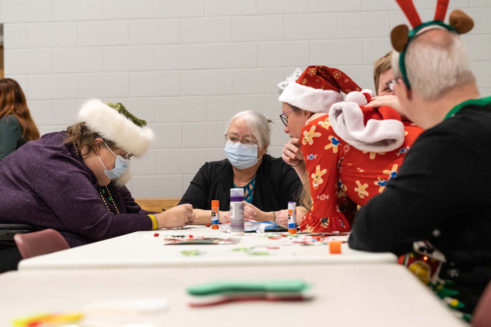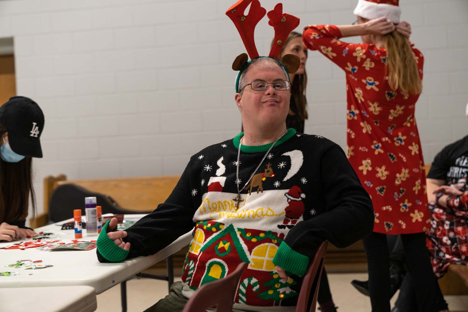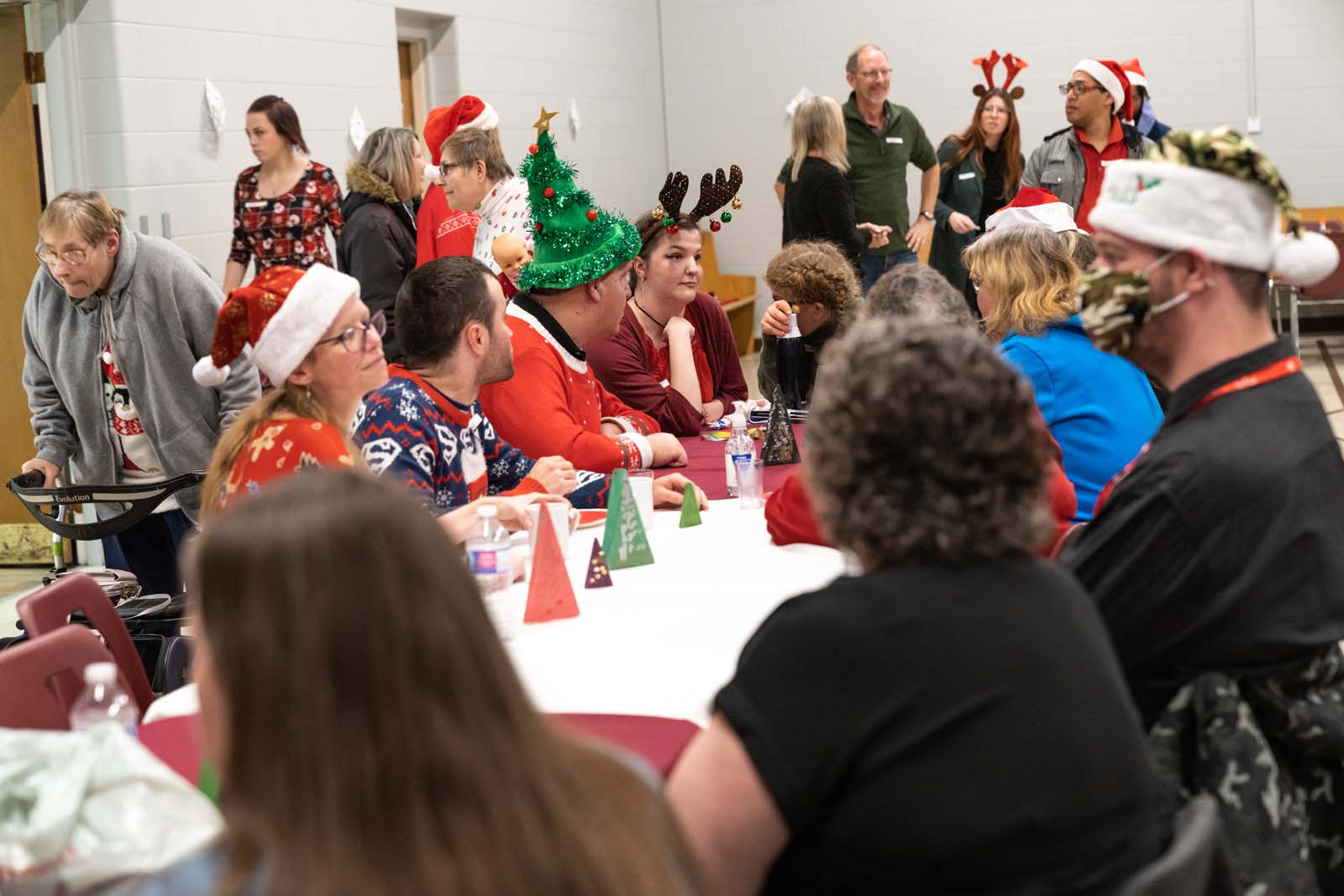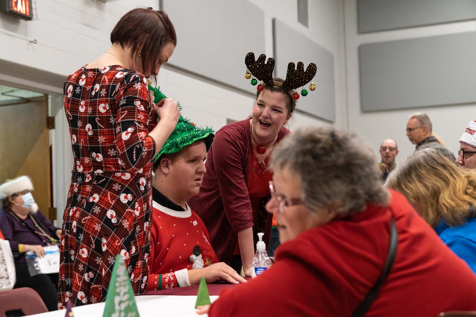 Activity tables included a craft table for ornament making as well as an Etsy table to show off our participant’s art which can be purchased on our Etsy site year round. The night wouldn’t have been complete without our concert of songs led by our staff teams and participants which included sign language and singing to Jingle Bells and a sing-along to We Wish you a Merry Christmas which had the whole building singing!