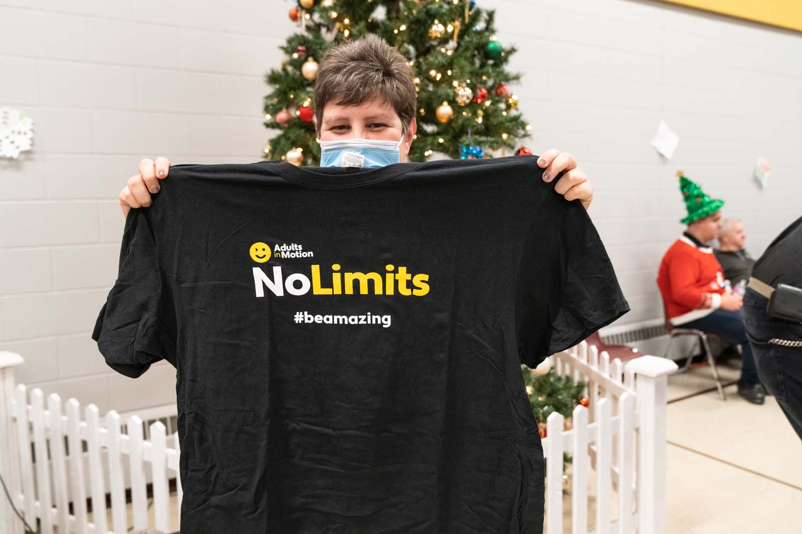 Topping off our Jingle Mingle was a surprise visit from Santa who brought participants new Adults in Motion t-shirts which were shown off proudly by all. Merry Christmas and Happy Holidays from our Adults in Motion family!